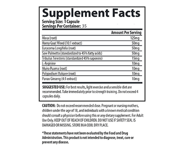Ingredients For Testo Boost (1 Bottle - 35 Capsules)
