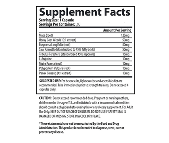 Ingredients For Testo Boost (1 Bottle - 30 Capsules)
